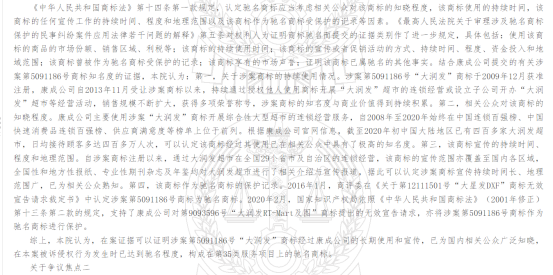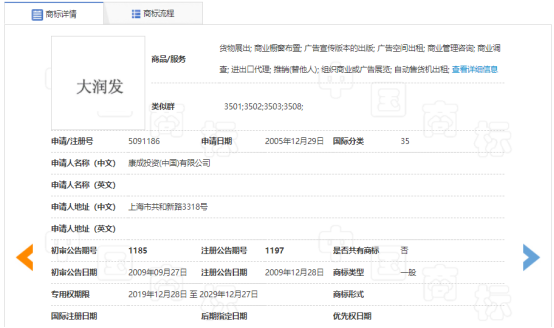 康成投資(中國)有限公司持有“大潤發(fā)”商標(biāo)權(quán),其中第5091186號“大潤發(fā)”商標(biāo)已成為馳名商標(biāo)。