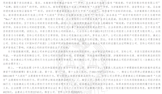 綜上判決,判定慈溪韓寶電器有限公司、寧波百羚制冷科技有限公司,共同賠償康成投資(中國)有限公司經(jīng)濟(jì)損失100萬元。